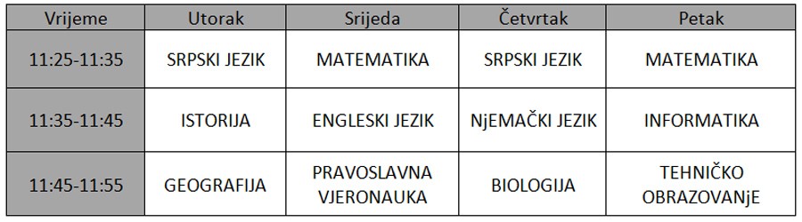 Predmetna nastava će sutra i prekosutra počinjati već od 11.25 , umjesto od 12.30 kao u prva dva dana emitovanja.