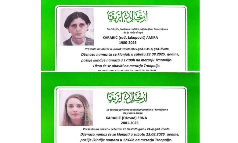 Amira Kararić (45) i njena kćerka Erna Kararić (24) koje su preminule od zadobijenih povreda u teškoj saobraćajki u Trnopolju kod Prijedora sutra će biti sahranjene na mezarju Trnopolje.