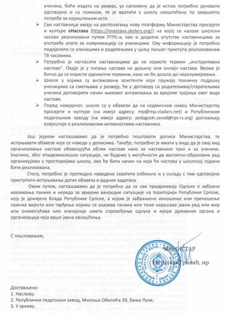 Zbog ovoga je Ministarstvo prosvjete i kulture RS izdalo naredbu svim osnovnim školama:
