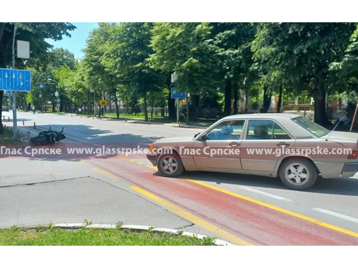 Motocikl i automobil sudarili su se u ulici Kralja Petra prvog Karađorđevića u blizini zgrade Vlade Srpske.