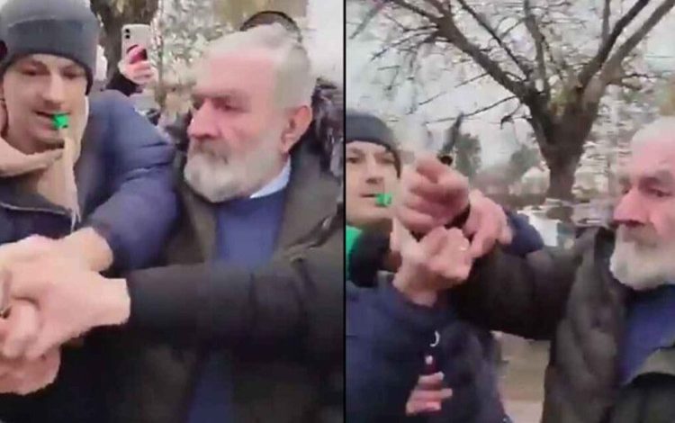 Sumnja se da je, oko 13 časova, ispred Medicinskog fakulteta, nožem pokušao da isiječe transparent koji su nosili studenti.