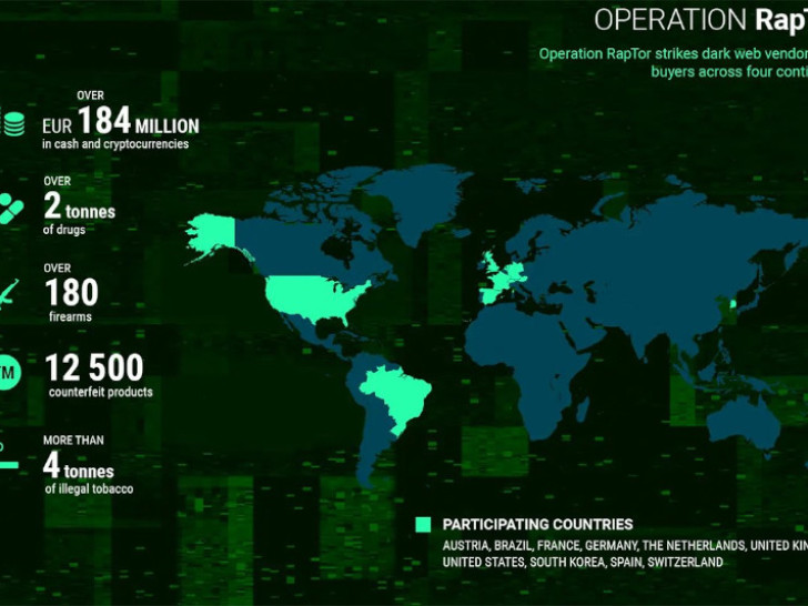 U saopštenju se navodi da su u operaciji "RapTor", razbijene međunarodne mreže koje su trgovale drogom, oružjem i falsifikovanom robom, a osumnjičeni su identifikovani kroz koordinisane istrage zasnovane na obavještajnim podacima dobijenim ukidanjem dark veb tržišta Nemesis, Tor2Door, Bohemia i Kingdom Markets.