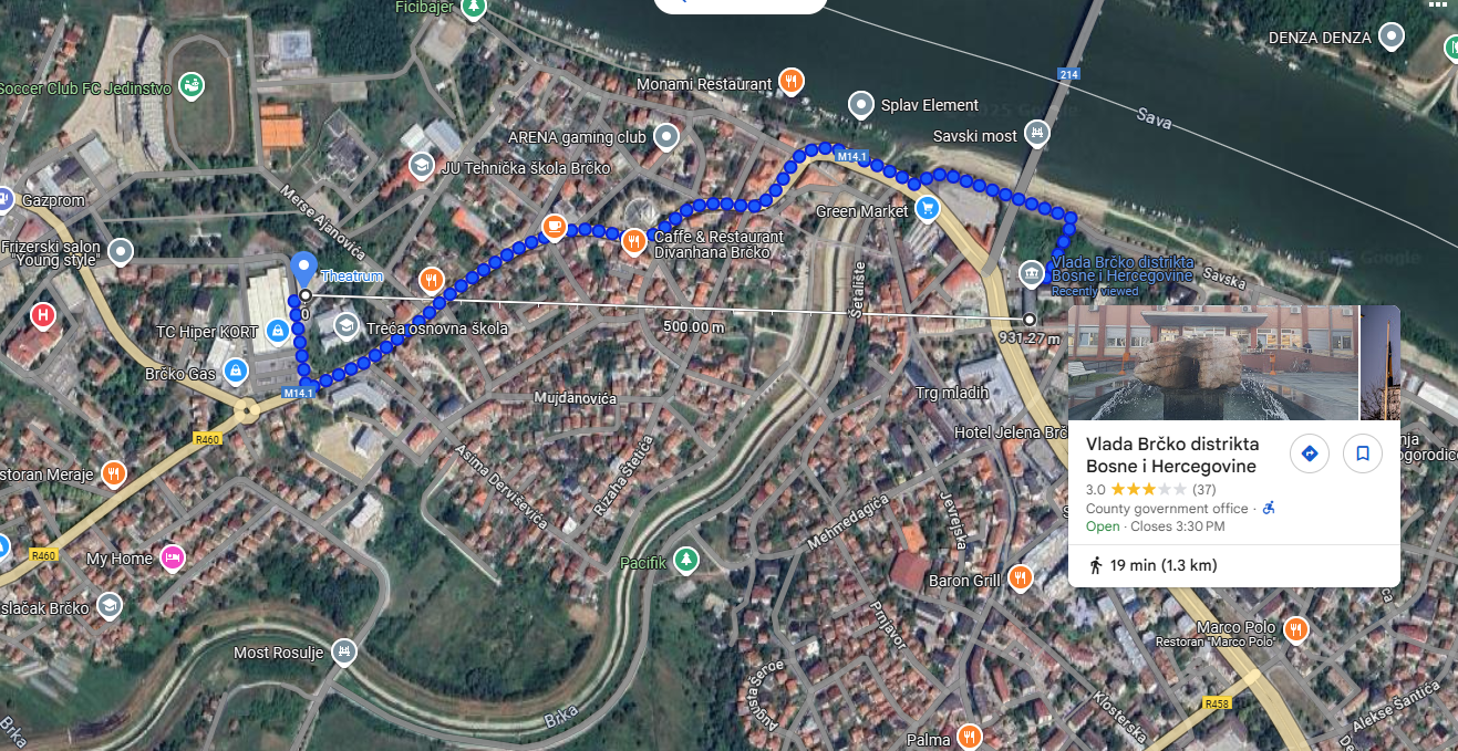 Upravo na ovoj razdaljini se nalazi kazino hotel „Teatrum“ u ulici Dobrice Cesarića, a koji se u javnosti spominjao kao jedna od lokacija na koju „cilja“ Vlada RS.