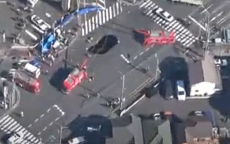 Prema navodima japanskih vlasti, kanalizacioni sistem prolazi kroz okolinu raskrsnice, a uzrok urušavanja saobraćajnice se istražuje.
