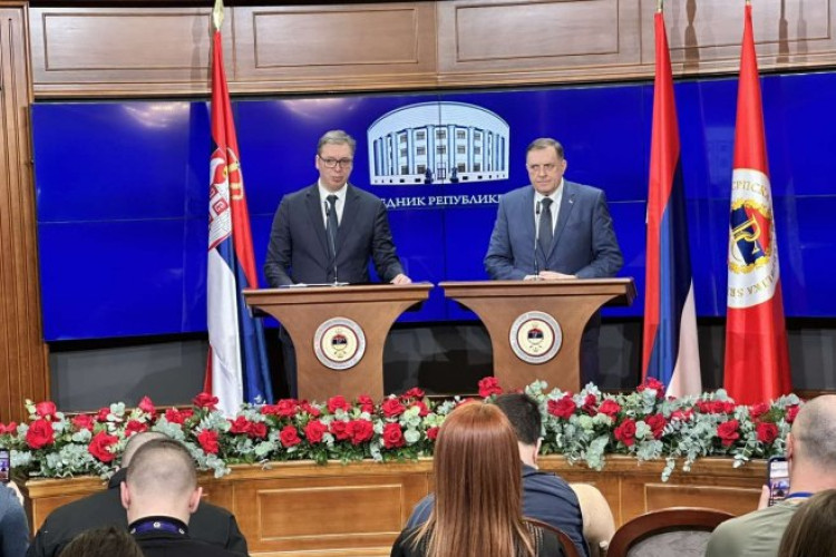 – Došao sam sa dve molbe kod Dodika, prva da zamolim njega i rukovodstvo Republike Srpske da još jedanput pozovu sve predstavnike vlasti i sve političke aktere u BiH, predstavnike EU, SAD, Rusije, Kine na razgovore, da zamolim Dodika da pokrene dijalog, razgvoore, da pokaže srpsko opredeljenje za mir, za rešavanje problema kroz dijalog. Druga stvar da zamolim Dodika i Stanivukovića i mnoge druge u Srpskoj za zajedništvo i jedinstvo po ključnim temama – poručio je Vučić.
