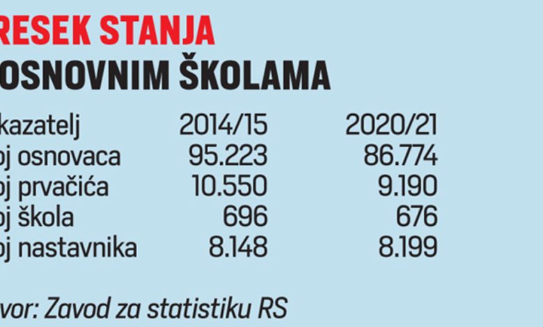 Tačno 460 osnovaca napustilo je školu u protekloj godini dana zbog odlaska u inostranstvo. Time je Srpska siromašnija za otprilike 25 odjeljenja, što se smatra većom školom.