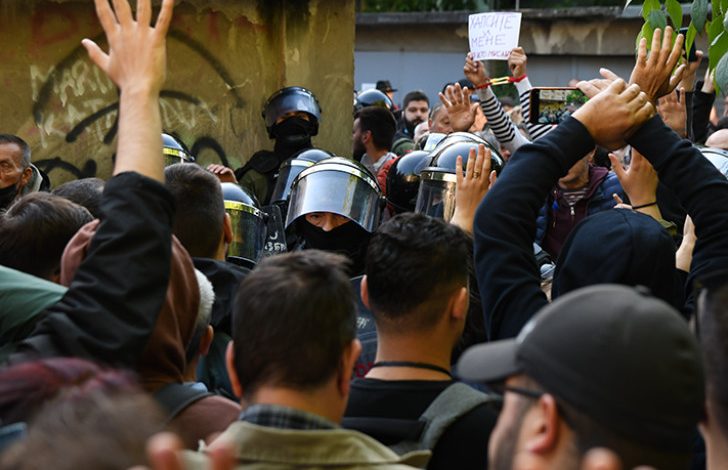 Žandarmerija ispred zgrade suda u Novom Sadu, došlo do naguravanja